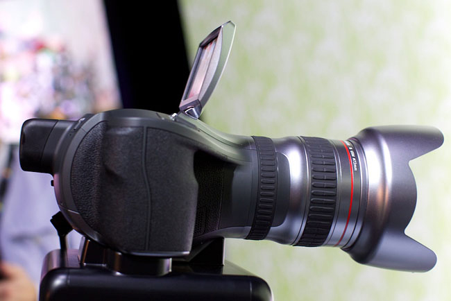 厭倦了傳統 DSLR 設計嗎? 看看這台 Canon 新的概念相機 – 4K 吧。4K 把 LCD 放到機頂上,這樣用家臉部不會像現在的 DSLR 般壓到 LCD 令它油油的,而且這設計更方便把攝 Movie,就像現時電視台所用的大型攝錄機一樣。此相機用一個極大體積及反應快的 CMOS 感應器可以拍出 60fps 的 Movie 。4K 暫時只作Canon 技術概念展示之用,但相信 Canon 將來會把 4K 的技術應用到新的 DSLR 上。