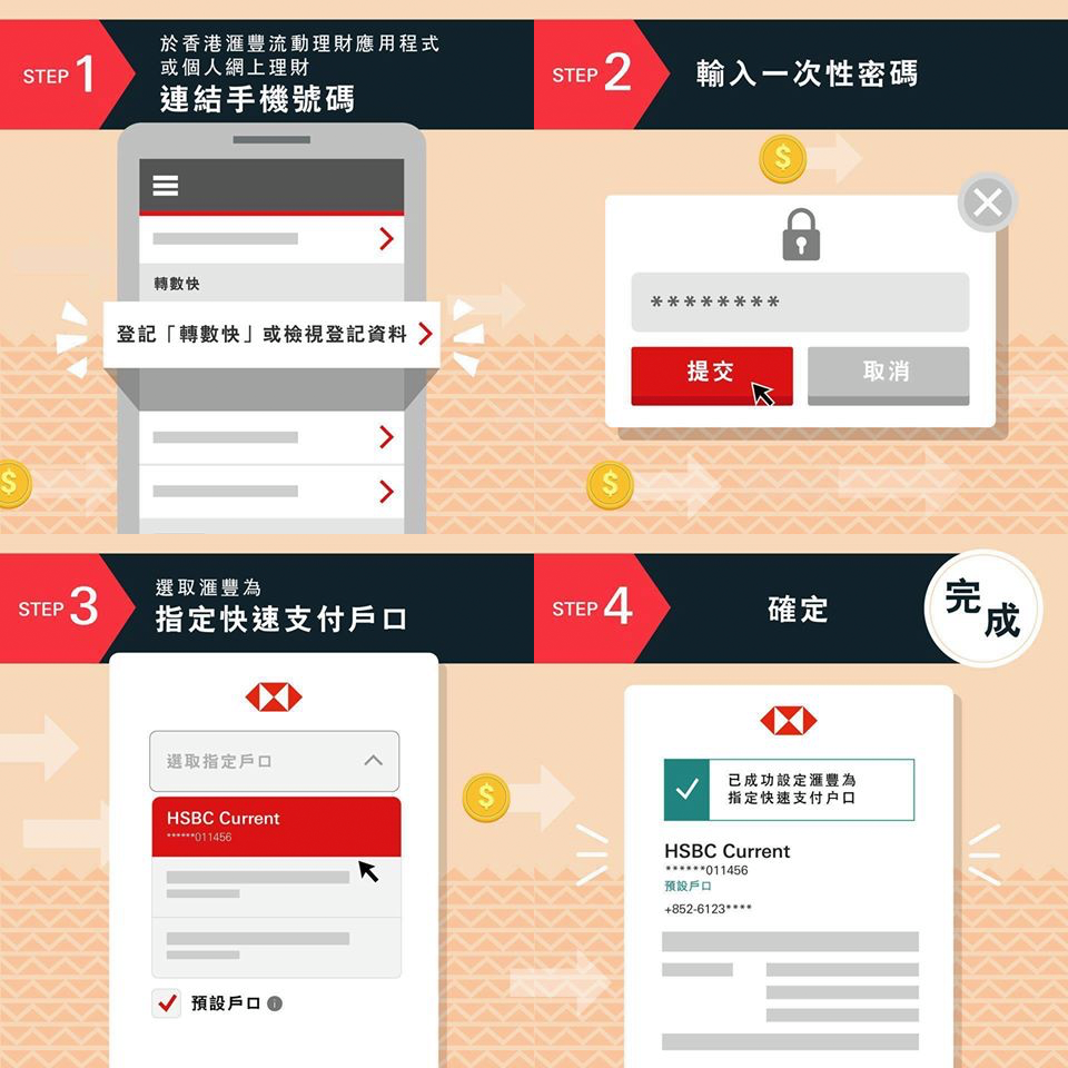 ▲ 以匯豐銀行為例,只須簡單 4 個步驟即可完成登記「轉數快」。